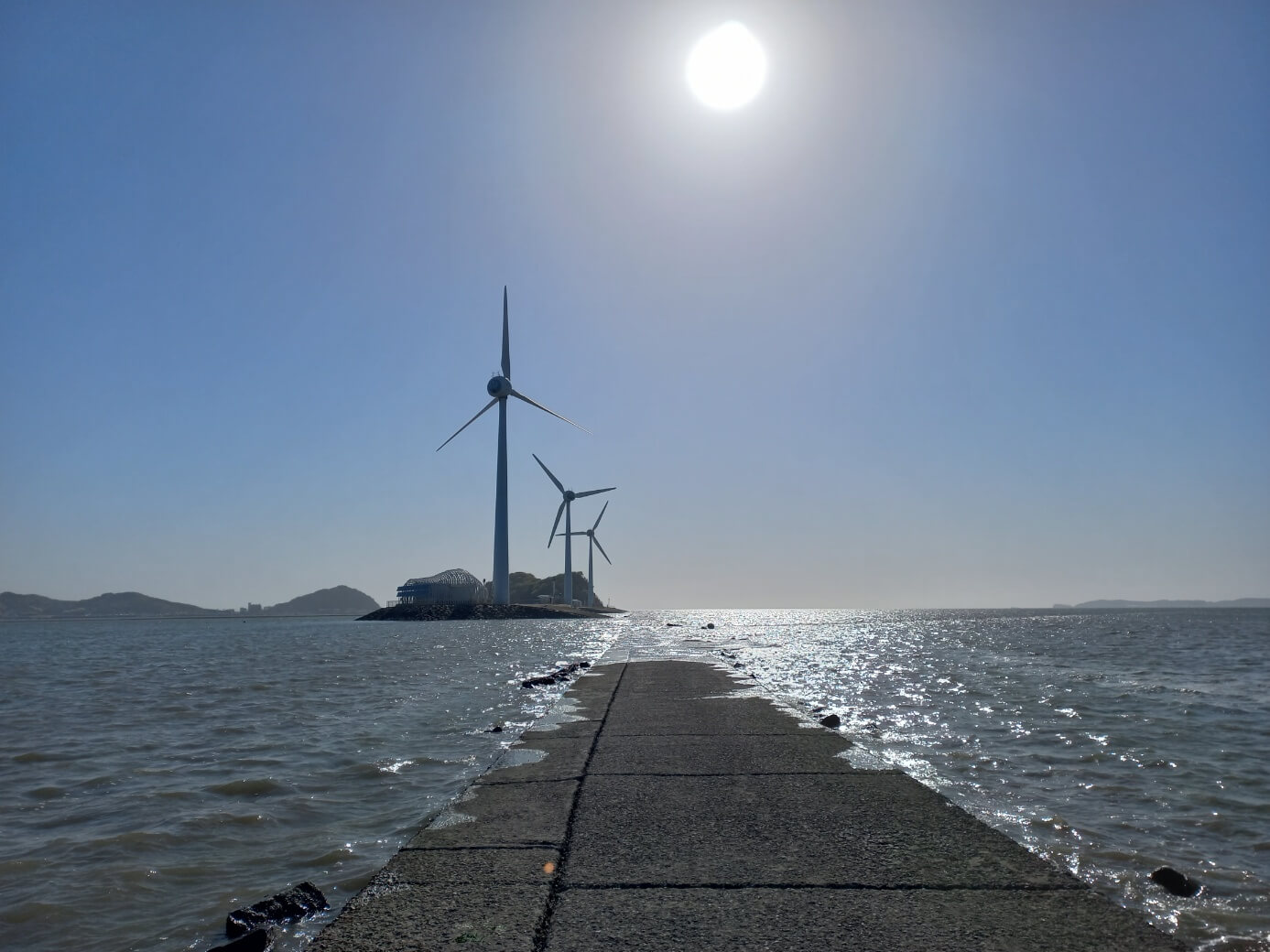 길을 따라 걷다 보면 풍력발전기 뒤에 위치한