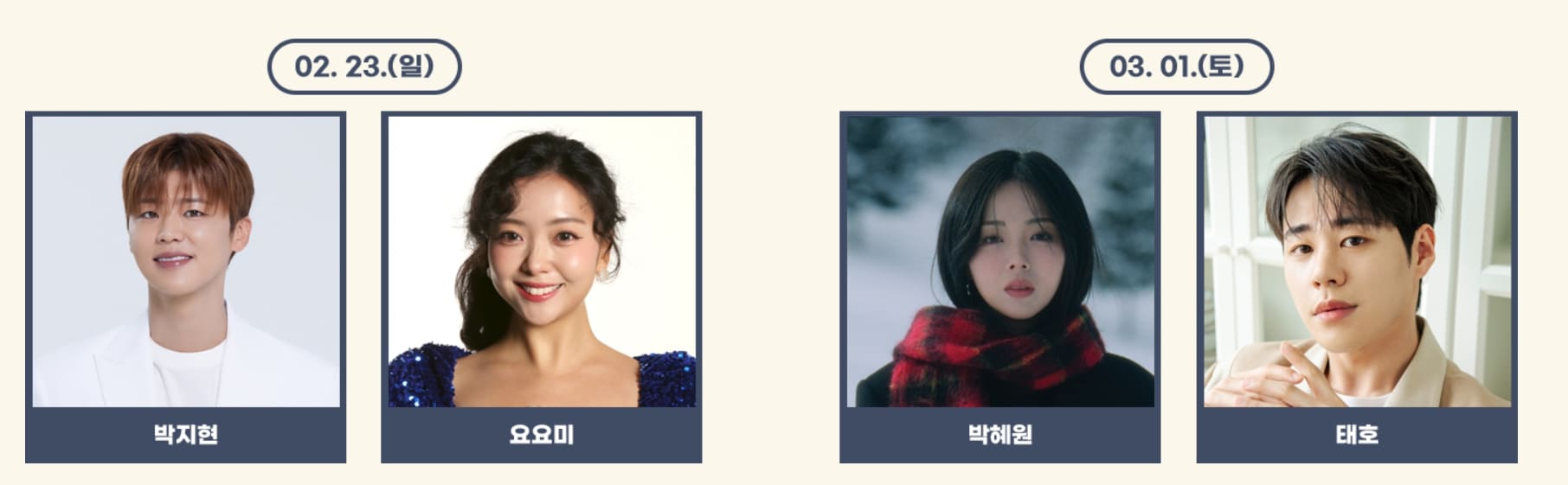 | 3월 1일(토) | 16:00~17:00 | 박혜원(HYNN), 태호 |