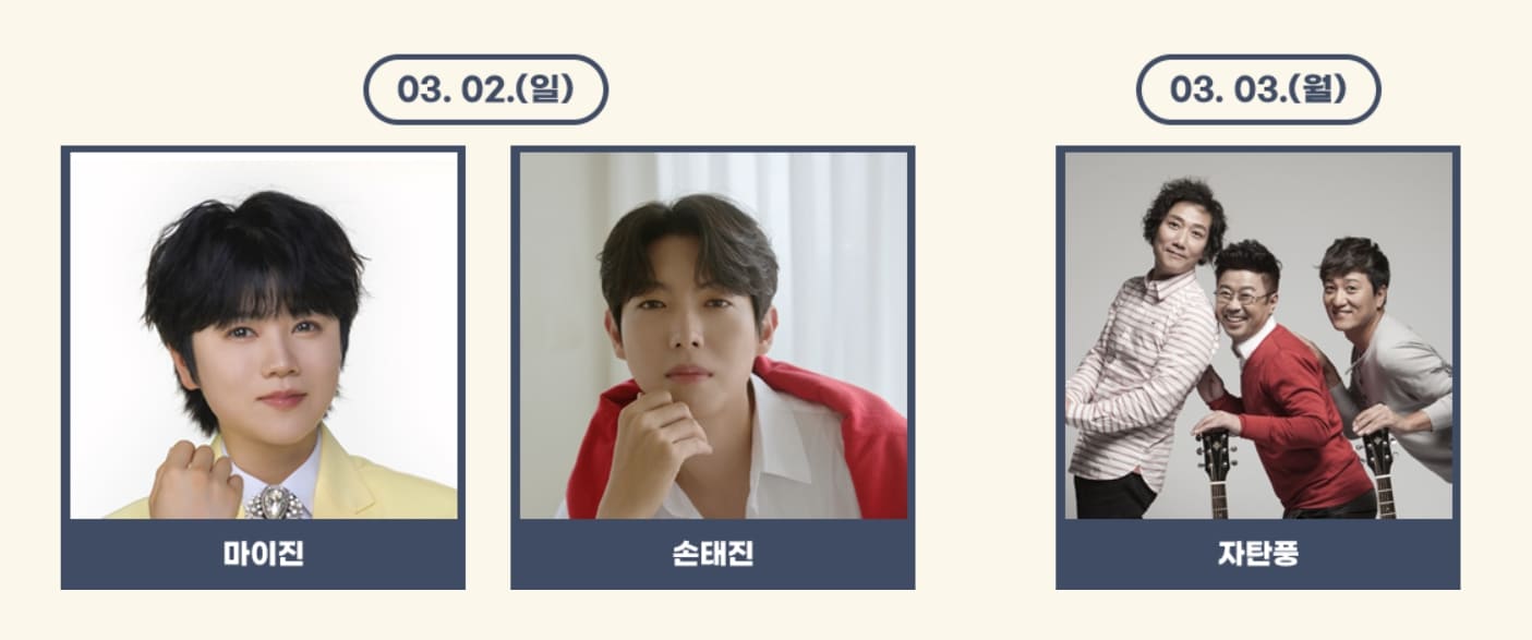 | 3월 2일(일) | 16:00~17:00 | 마이진, 손태진 |