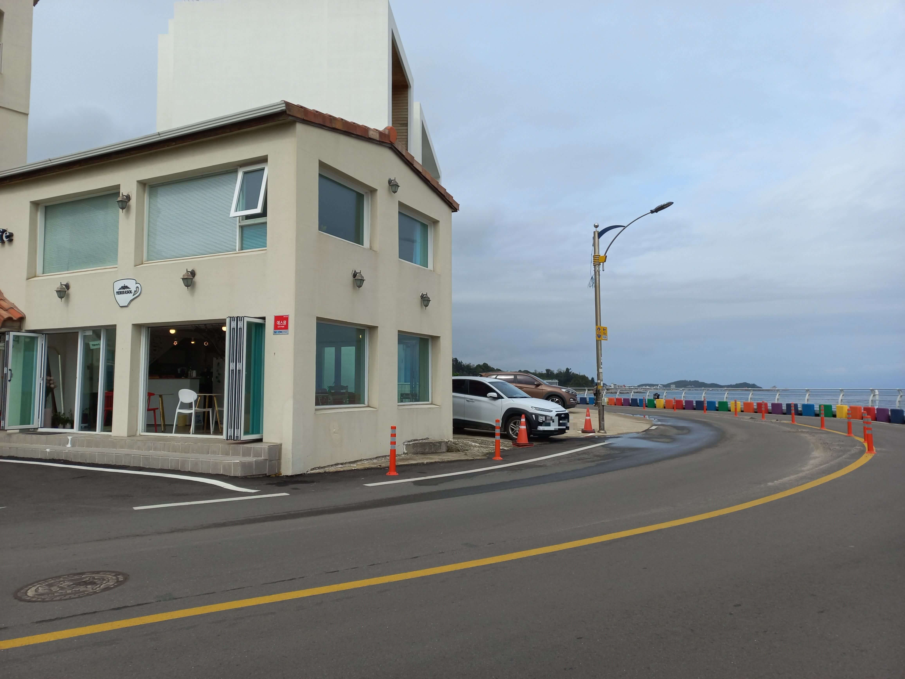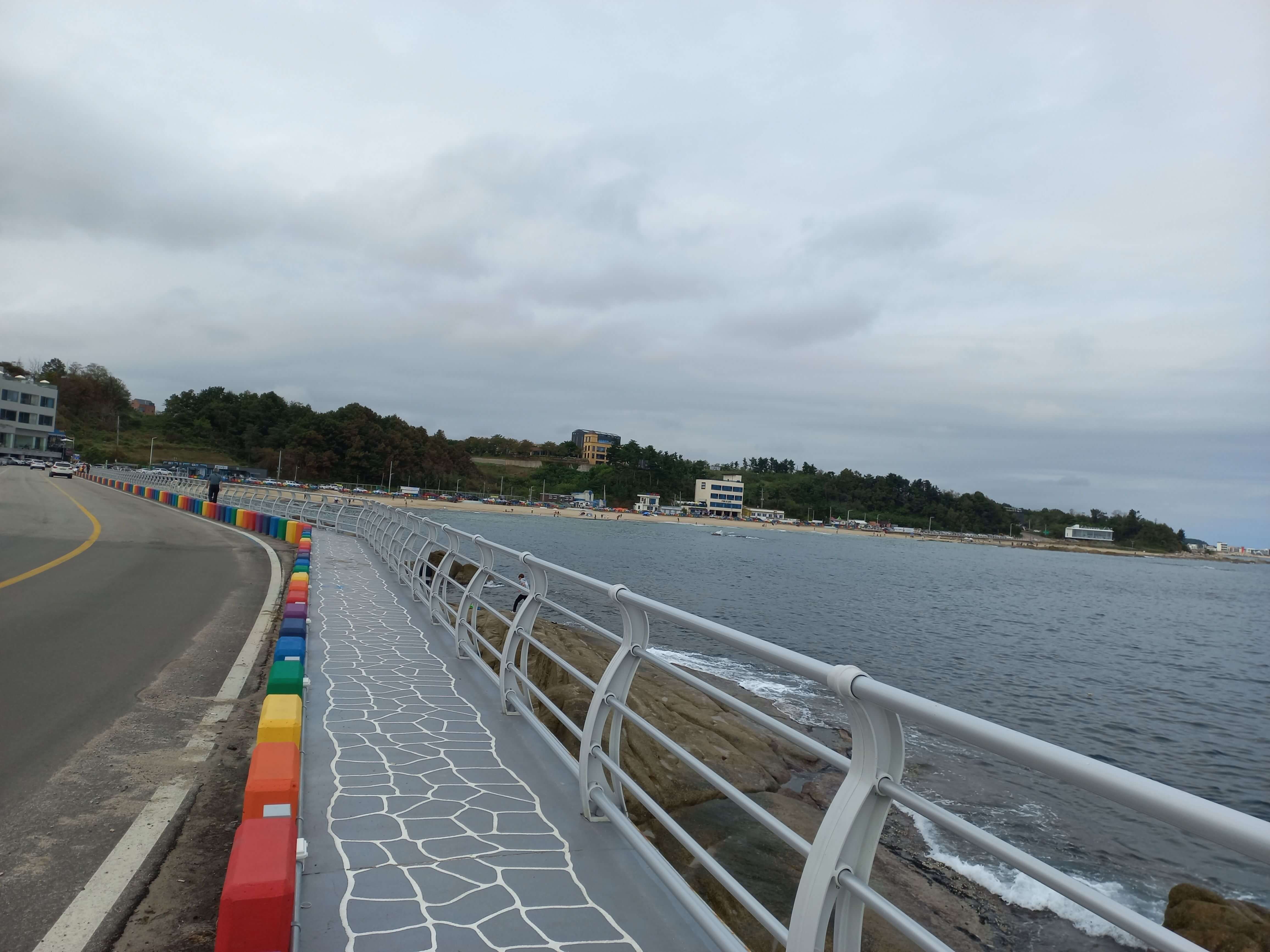 돌들이 알록달록 무지개 색상으로 되어 있어 너무 예쁘고 도로랑 인도가 구분되어 있어 산책하기 좋습니다