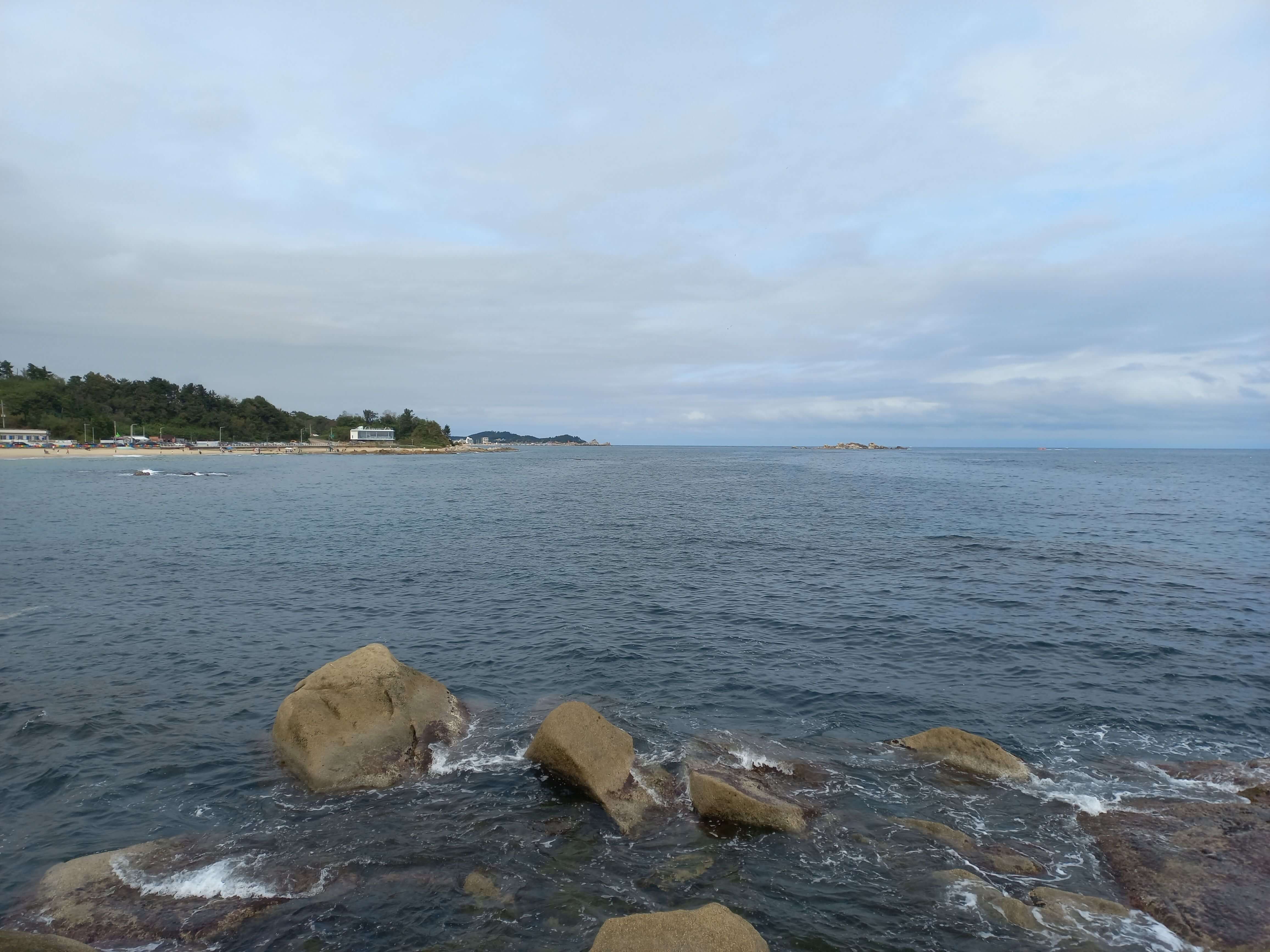 해변이 넓고 평평한 바위가 많아 바위와 함께 바다를 조금 더 가까이에서 볼 수 있습니다