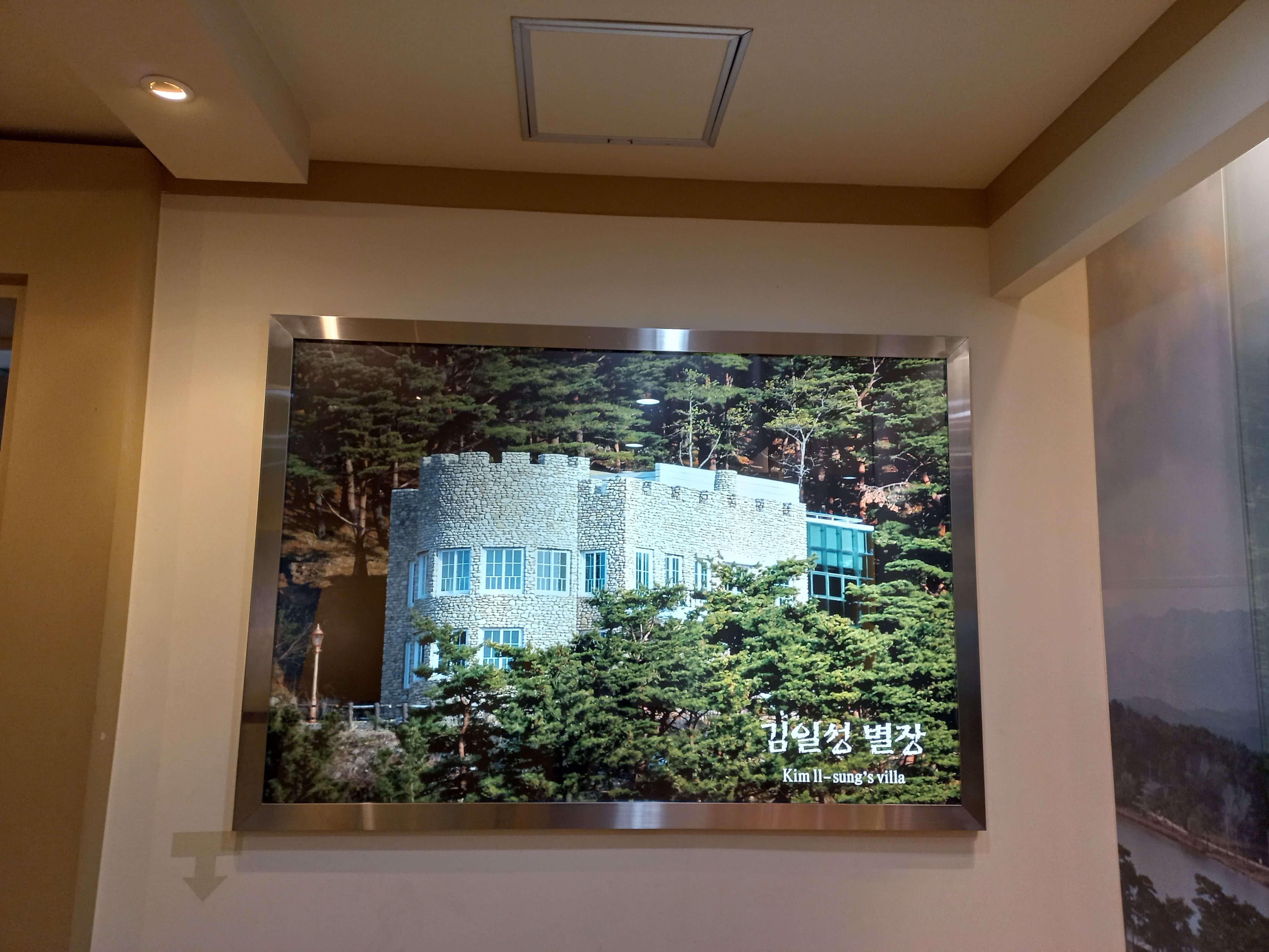 내부로 들어가기 전에 돌계단에는 김정일이 앉아서 사진 찍은 곳이라는 표시가 되어 있으며 이 곳이 메인 포토존이며 김정일이 그의 동생 김경희와 함께 앉아 사진을 찍은 곳입니다