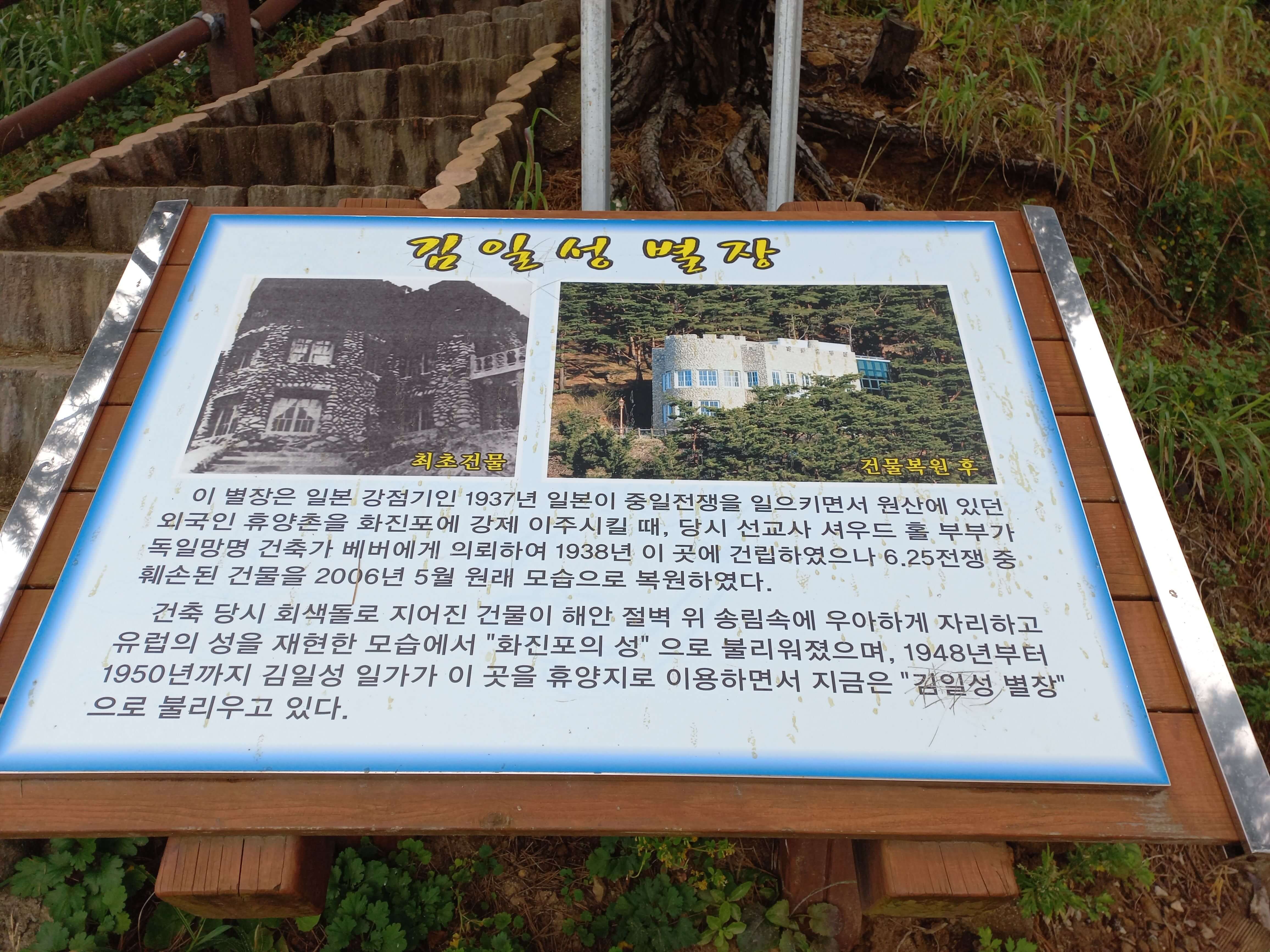 건축 당시 회색돌로 지어진 건물이 해안 절벽 위 송림속에 우아하게 자리하고 유럽의 성을 재현한 모습에서 화진포의 성으로 불리워 졌으며 김일성 일가가 휴양지로 이용하면서 지금은 김일성별장으로 불리고 있다고 합니다