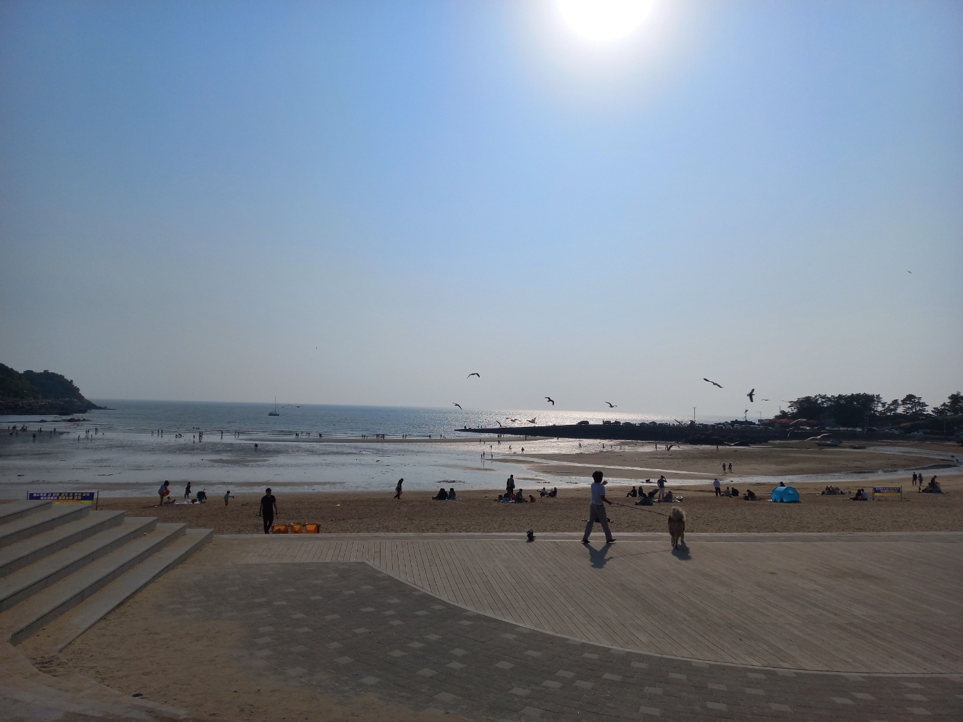 바다물이 앝고 조수간만의 차가 있어서 해수욕과 함께 갯벌체험을 동시에 즐길 수 있는 장점이 있는 매력적인 곳입니다