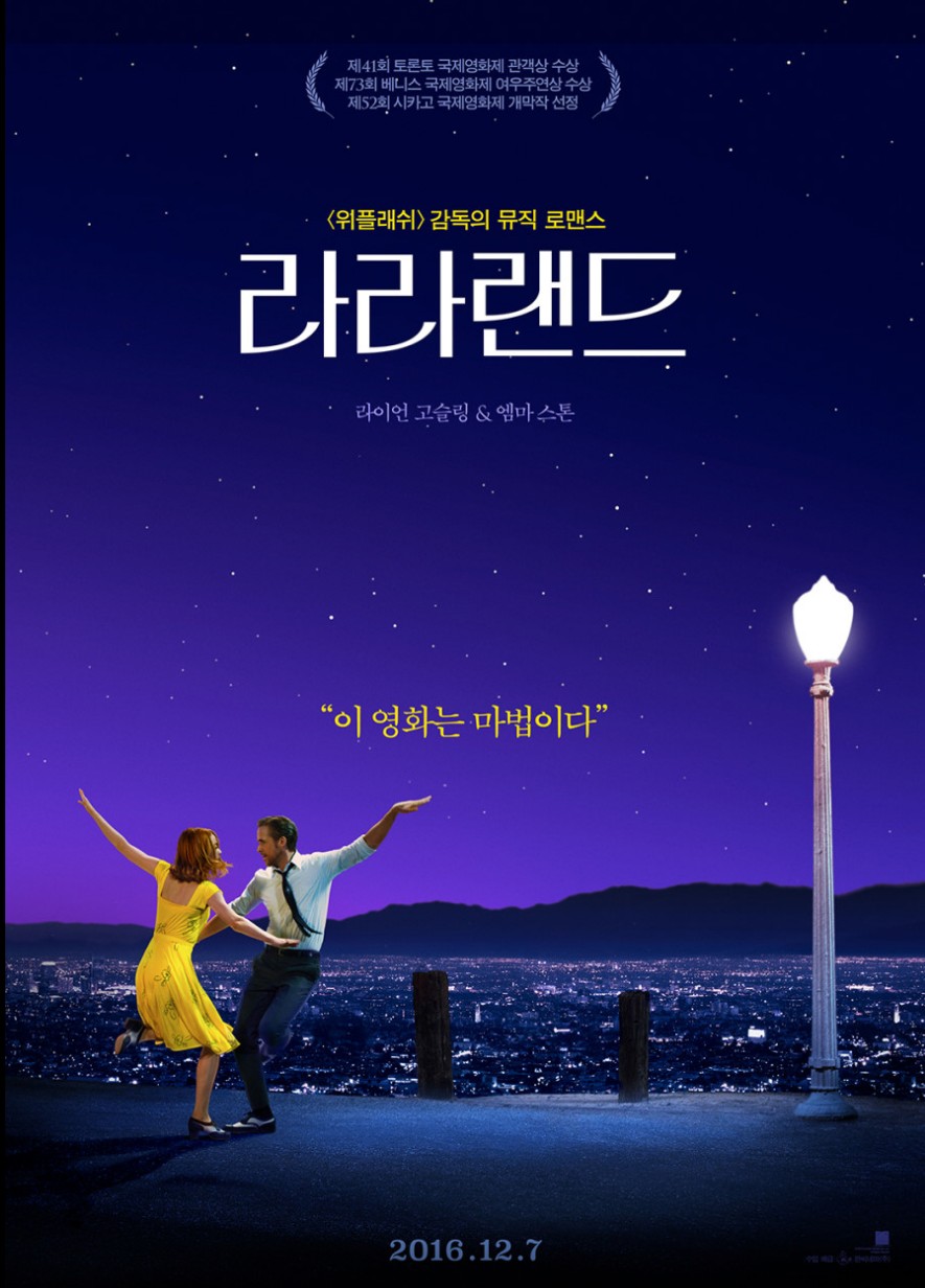 라라랜드는 저에게 큰 감동과 영감을 선사한 영화입니다 처음에는 단순히 로맨스물일 뿐이라고 생각했지만 마침내 이 영화는 그 이상의 의미를 담고 있었습니다. 우선 음악은 정말로 대단합니다. 그 모든 음악들이 영화의 캐릭터들과 함께 자연스럽게 녹아들어 그들의 내면을 완벽하게 표현해주고 있습니다.