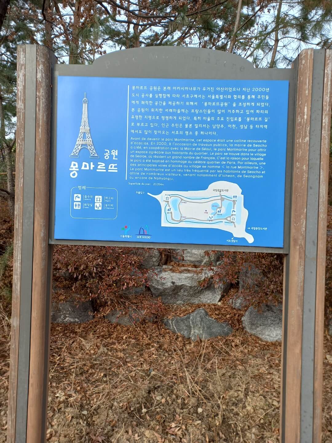인근 서래마을에 프랑스인들이 많이 거주하여 파리의 유명한 지명으로 몽마르뜨공원이라는 이름이 붙었다고 합니다.